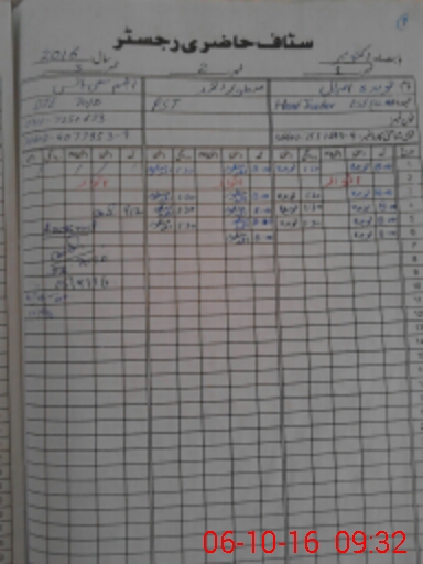 | CNIC | Full Name | Designation | R/C | Absence During Last Calender Month |