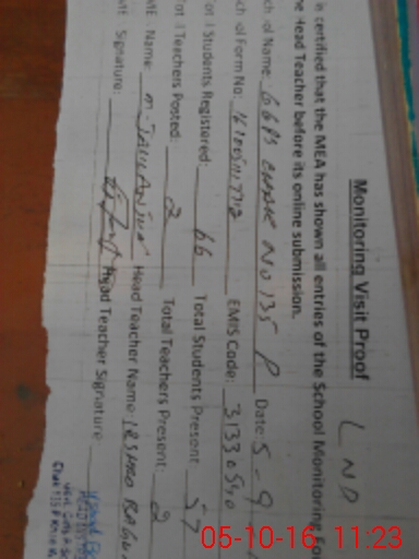 | Certified that this School was Inspected by the Undersigned MEA/DMO Today and the Information Stated Above is as Per Record. | |||||
