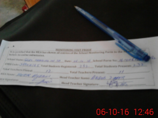 | Attendance Register | Head Teacher | MEA with School | Visit Proof |