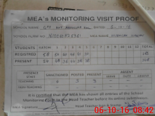 | Attendance Register | Head Teacher | MEA with School | Visit Proof |