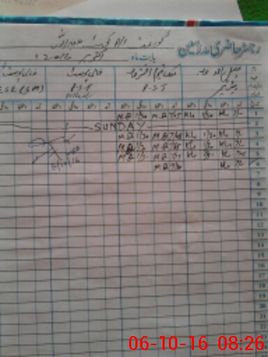 | CNIC | Full Name | Designation | R/C | Absence During Last Calender Month |