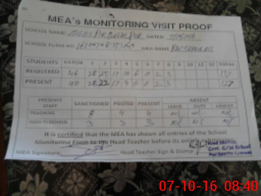 | Attendance Register | Head Teacher | MEA with School | Visit Proof |