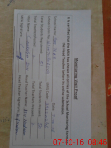 | Certified that this School was Inspected by the Undersigned MEA/DMO Today and the Information Stated Above is as Per Record. | |||||