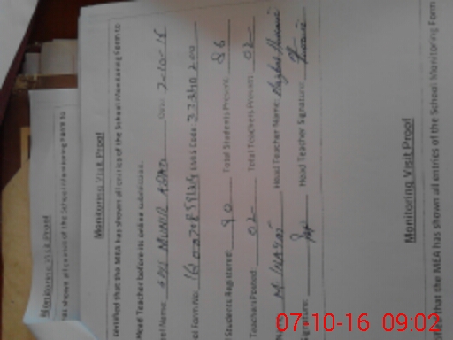 | Attendance Register | Head Teacher | MEA with School | Visit Proof |