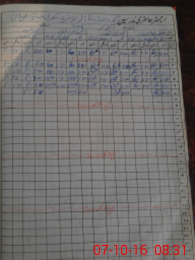 | CNIC | Full Name | Designation | R/C | Absence During Last Calender Month |