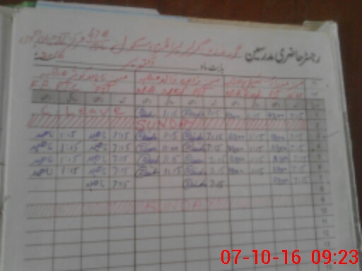 | CNIC | Full Name | Designation | R/C | Absence During Last Calender Month |