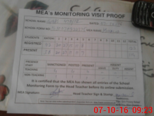 | Attendance Register | Head Teacher | MEA with School | Visit Proof |