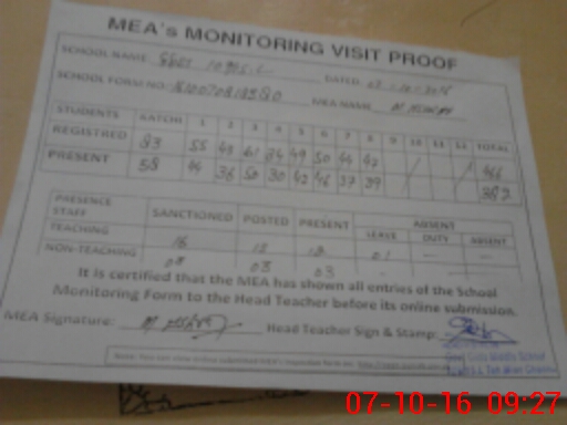 | Certified that this School was Inspected by the Undersigned MEA/DMO Today and the Information Stated Above is as Per Record. | |||||