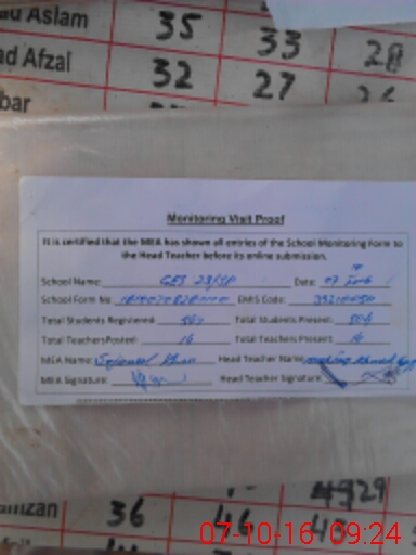 | Certified that this School was Inspected by the Undersigned MEA/DMO Today and the Information Stated Above is as Per Record. | |||||