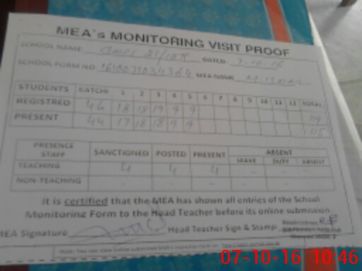 | Certified that this School was Inspected by the Undersigned MEA/DMO Today and the Information Stated Above is as Per Record. | |||||