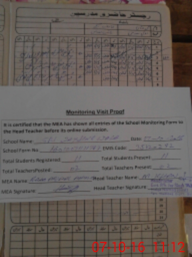 | Attendance Register | Head Teacher | MEA with School | Visit Proof |