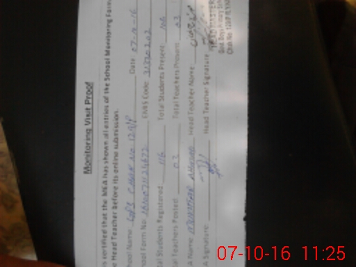 | Attendance Register | Head Teacher | MEA with School | Visit Proof |