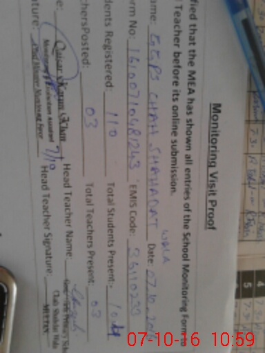 | Name: Iq**** Bh**** Designation: (School Headmaster's/Headmistress's) Pst Phone/Cell Number: 03**** |
