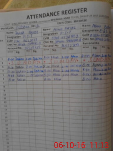 | CNIC | Full Name | Designation | R/C | Absence During Last Calender Month |