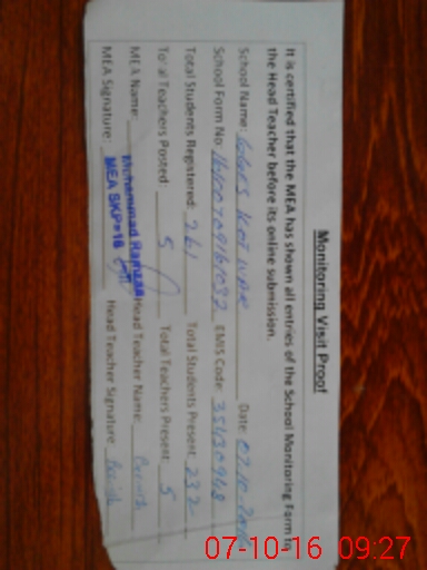 | Certified that this School was Inspected by the Undersigned MEA/DMO Today and the Information Stated Above is as Per Record. | |||||