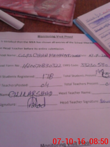 | Attendance Register | Head Teacher | MEA with School | Visit Proof |
