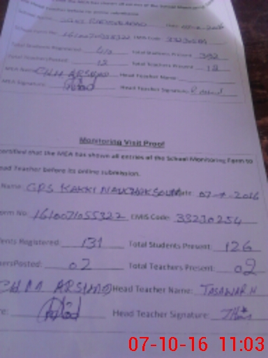| Certified that this School was Inspected by the Undersigned MEA/DMO Today and the Information Stated Above is as Per Record. | |||||