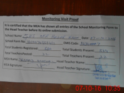 | EMIS Code: 32340007 | Name of School: GHS MIR HAZAR KHAN | |||