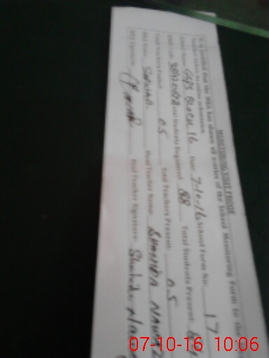 | Monitoring Date: 07-10-2016 | Start Time: 07-10-2016 09:56 AM | End Time: 07-10-2016 10:14 AM | Name of MEA: MU**** SA**** AL**** (R**** | |