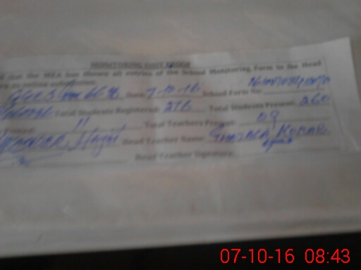 | Attendance Register | Head Teacher | MEA with School | Visit Proof |