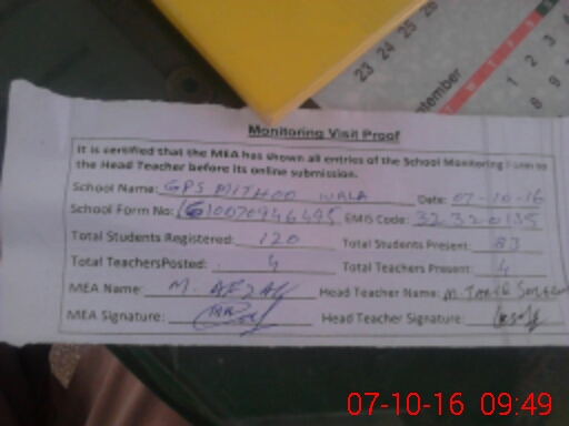 | EMIS Code: 32320135 | Name of School: GPS MITHOO WALA | |||