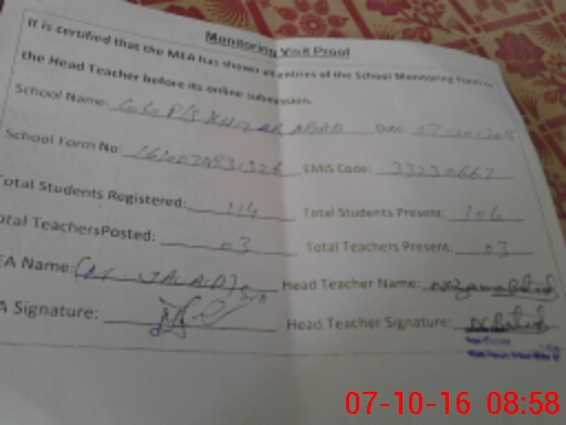 | Certified that this School was Inspected by the Undersigned MEA/DMO Today and the Information Stated Above is as Per Record. | |||||