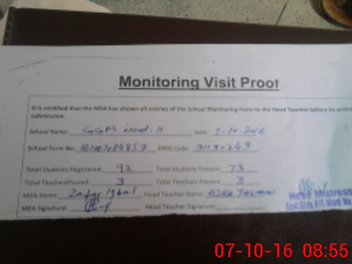 | Certified that this School was Inspected by the Undersigned MEA/DMO Today and the Information Stated Above is as Per Record. | |||||