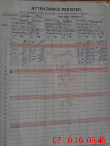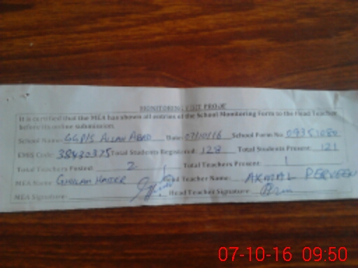 | Name: AK**** PA**** Designation: (School Headmaster's/Headmistress's) PST Phone/Cell Number: 03**** |
