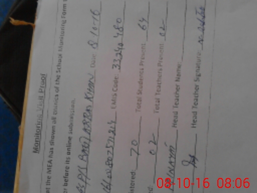 | Certified that this School was Inspected by the Undersigned MEA/DMO Today and the Information Stated Above is as Per Record. | |||||