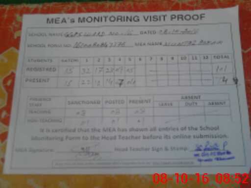 | Certified that this School was Inspected by the Undersigned MEA/DMO Today and the Information Stated Above is as Per Record. | |||||