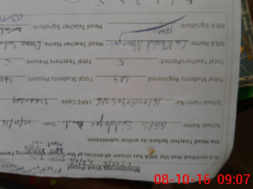 | Certified that this School was Inspected by the Undersigned MEA/DMO Today and the Information Stated Above is as Per Record. | |||||