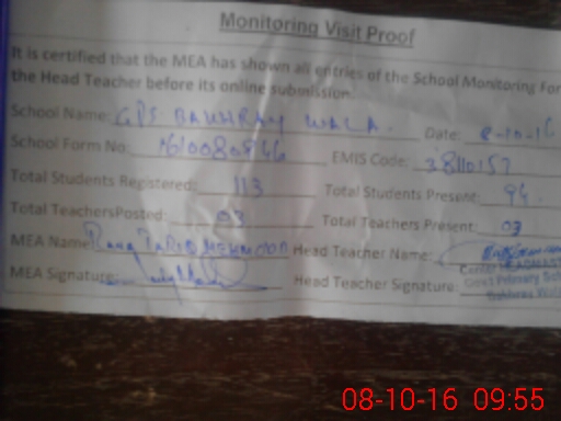 | EMIS Code: 38110157 | Name of School: GPS BAKHRRAY WALA | |||