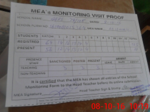 | Attendance Register | Head Teacher | MEA with School | Visit Proof |