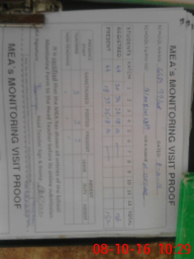 | Monitoring Date: 08-10-2016 | Start Time: 08-10-2016 09:47 AM | End Time: 08-10-2016 10:31 AM | Name of MEA: M.Is**** (S**** 03**** | |