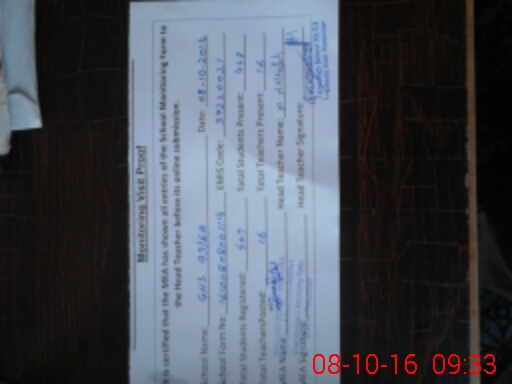 | Monitoring Date: 08-10-2016 | Start Time: 08-10-2016 08:00 AM | End Time: 08-10-2016 09:33 AM | Name of MEA: Gh**** Mu**** Mu**** (R**** | |