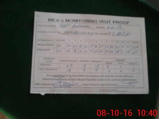 | Attendance Register | Head Teacher | MEA with School | Visit Proof |