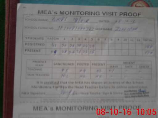| Certified that this School was Inspected by the Undersigned MEA/DMO Today and the Information Stated Above is as Per Record. | |||||