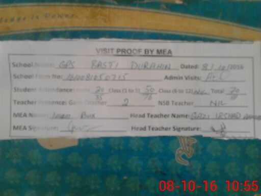 | EMIS Code: 32430033 | Name of School: GPS BASTI DURAHEN | |||