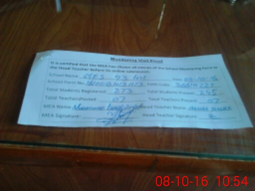 | Certified that this School was Inspected by the Undersigned MEA/DMO Today and the Information Stated Above is as Per Record. | |||||