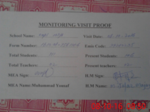 | Certified that this School was Inspected by the Undersigned MEA/DMO Today and the Information Stated Above is as Per Record. | |||||