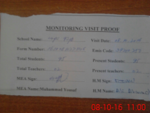 | Certified that this School was Inspected by the Undersigned MEA/DMO Today and the Information Stated Above is as Per Record. | |||||