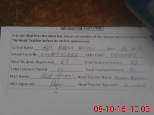 | Certified that this School was Inspected by the Undersigned MEA/DMO Today and the Information Stated Above is as Per Record. | |||||