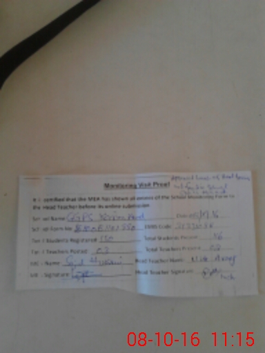 | Attendance Register | Head Teacher | MEA with School | Visit Proof |