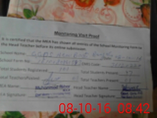 | Attendance Register | Head Teacher | MEA with School | Visit Proof |