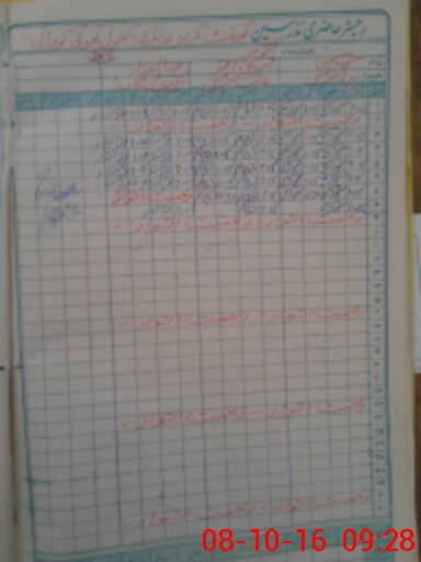 | CNIC | Full Name | Designation | R/C | Absence During Last Calender Month |