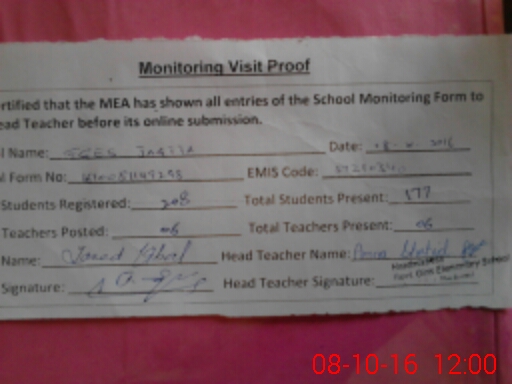 | Attendance Register | Head Teacher | MEA with School | Visit Proof |