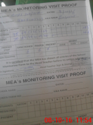 | Attendance Register | Head Teacher | MEA with School | Visit Proof |