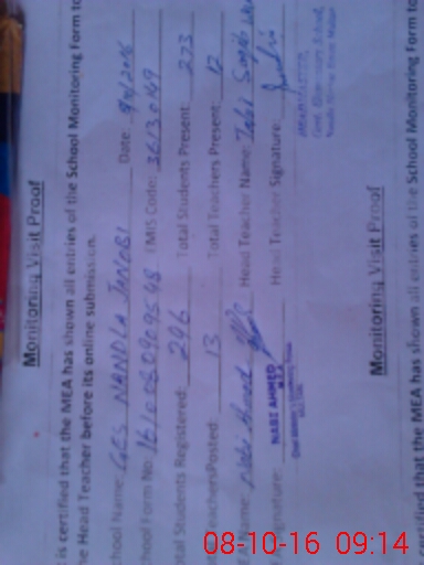| Certified that this School was Inspected by the Undersigned MEA/DMO Today and the Information Stated Above is as Per Record. | |||||