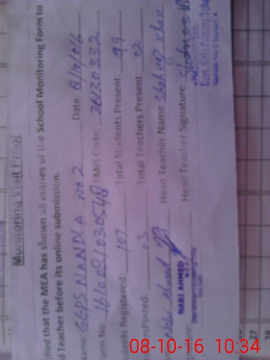 | Certified that this School was Inspected by the Undersigned MEA/DMO Today and the Information Stated Above is as Per Record. | |||||