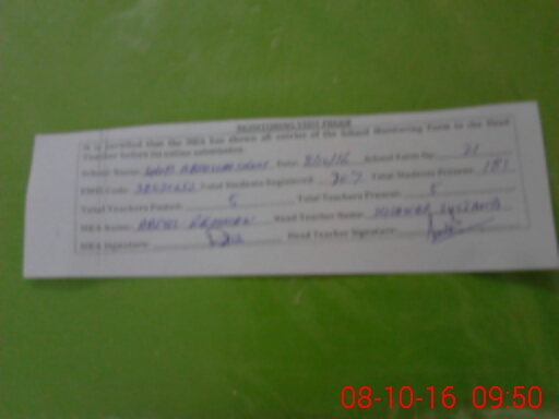 | Attendance Register | Head Teacher | MEA with School | Visit Proof |